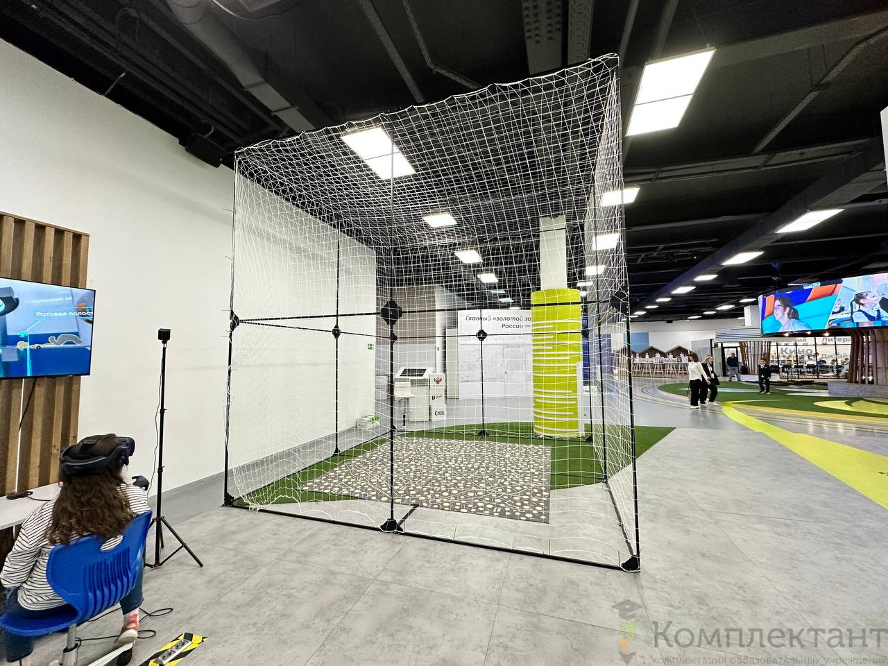 Оборудованная зона для полётов – куб для полётов 3х3х3м с демпфирующим покрытием