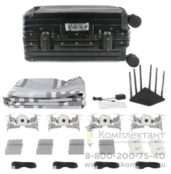 Управление 4 дронами одновременно для обучающихся возрастом с 8 до 16 дет. С данным комплектом обучающиеся научатся управлять одновременно 4 дронами при помощи разных языков программирования.