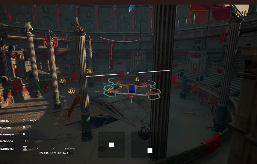 - Обучение базовому управлению квадрокоптером внутри симуляции