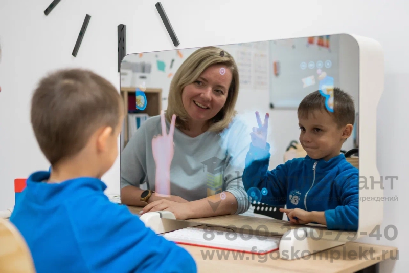 Умное зерка ло ArtikMe - это профессиональный инструмент логопеда для коррекционной работы с детьми, имеющими проблемы в речевом, когнитивном и эмоциональном развитии. Ребёнок видит одновременно своё отражение и волшебный мир, в котором живут сказочные персонажи. Они сопровождают ребёнка по зеркальному миру, дают задания и помогают их выполнить. Для работы необходим ноутбук.