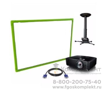 Интерактивная доска, настенное крепление для доски, видеопроектор SVGA, 4000 Лм, потолочное крепление для проектора, видеокабель SVGA 15м, usb кабель, длина 5 м, безбатарейный стилус, 2 шт, телескопическая указка