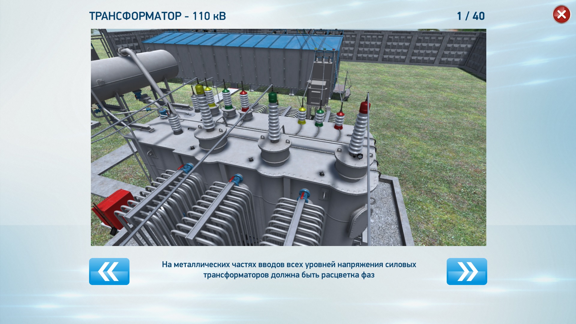 В режиме тренировки пользователь последовательно выполняет осмотр устройств и элементов трансформатора, знакомится с типичными видами нарушений и неисправностей (40 типов), требованиями нормативной документации.