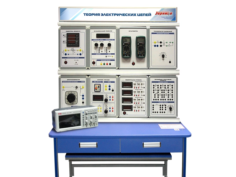 Комплект учебно-лабораторного оборудования "Теория электрических цепей" (далее стенд) предназначен для изучения электрических цепей постоянного и переменного тока, трехфазных цепей, переходных процессов в линейных и нелинейных электрических цепях, электрических цепей с последовательным и параллельным соединением элементов.