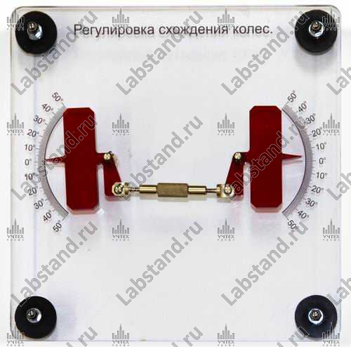 Элементы демонстрационного учебного стенд «»Регулировка схождения колёс»» выполнены из прозрачного и цветного органического стекла, что позволяет обеспечить возможность демонстрации механизма на экране.