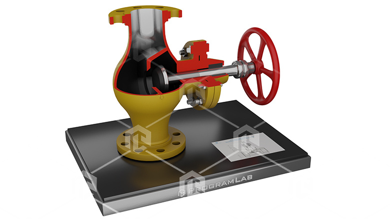Макет разреза конического вентиля выполнен из подручных легко обрабатываемых материалов с использованием элементов трехмерной печати в настольном варианте, позволяет наглядно изучить устройство и элементы конического вентиля, содержит экспликацию оборудования.