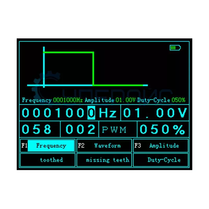 Типы выходных сигналов | постоянная волна, прямоугольная волна, синусоидальная волна, сигнал рабочего цикла, зубчатая волна |