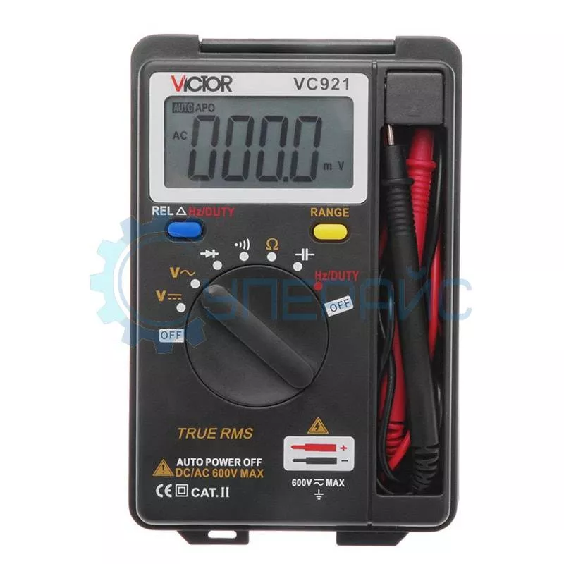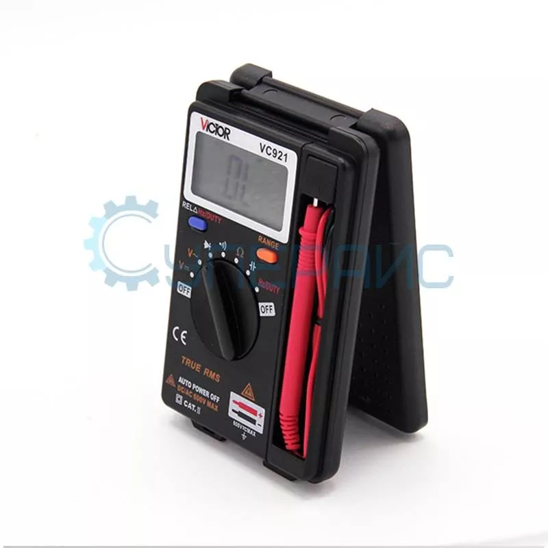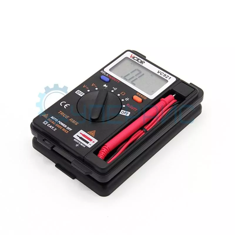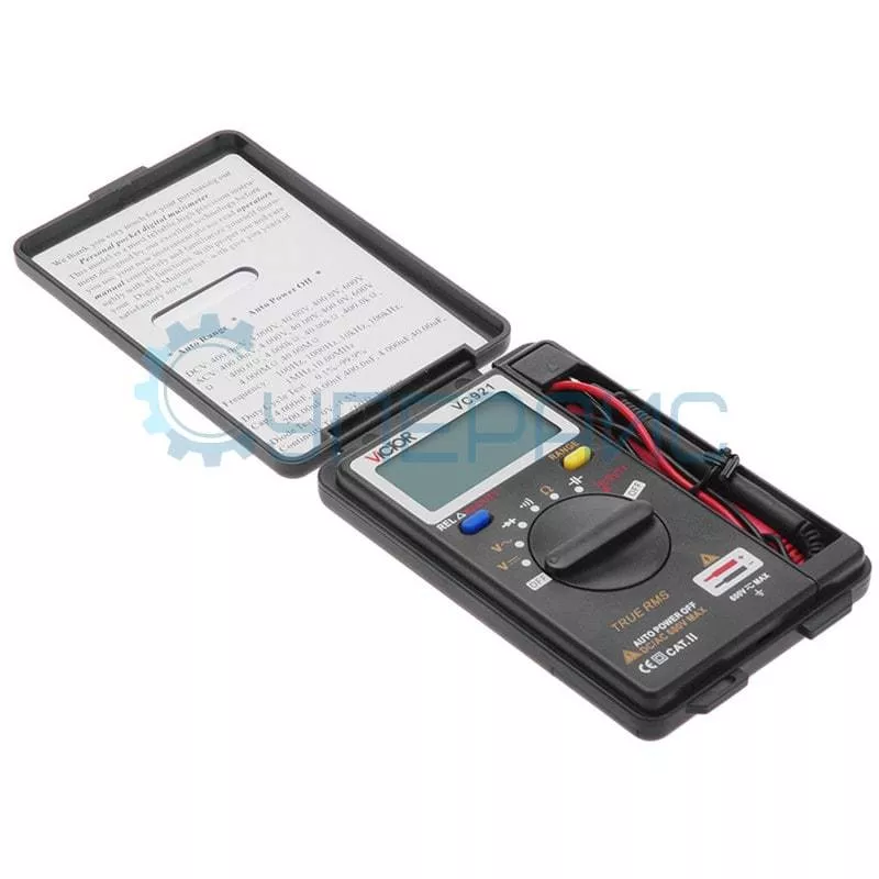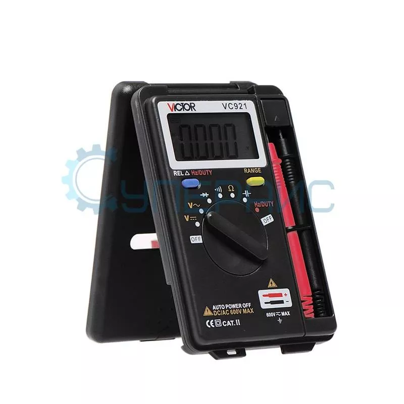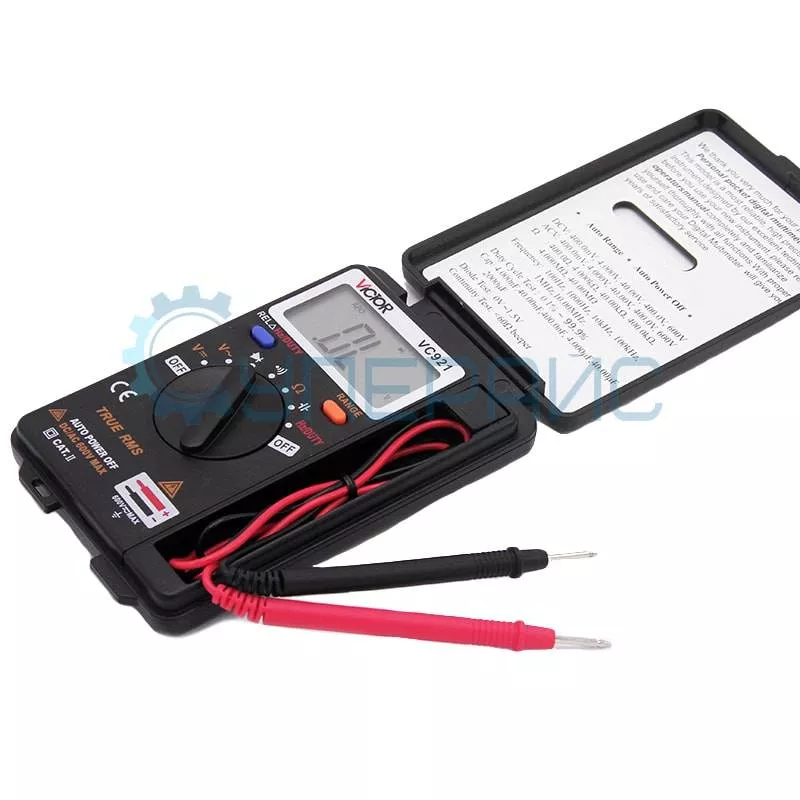 Мультиметр Victor VC921 для измерения постоянного и переменного напряжения, сопротивления, ёмкости, частоты, скважности, с возможностью тестирования диодов и прозвонки электрических цепей.