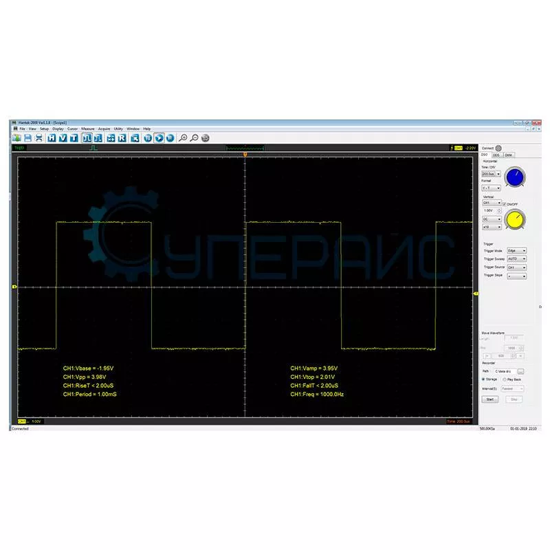 Функция автоматического измерения частоты и амплитуды упрощает анализ сигналов, а режим курсорных измерений позволяет точно определить временные интервалы и перепады напряжения. Для работы с высоковольтными цепями (до 150 В) предусмотрены зажимы-крокодилы и аттенюаторы, снижающие риск повреждения прибора.