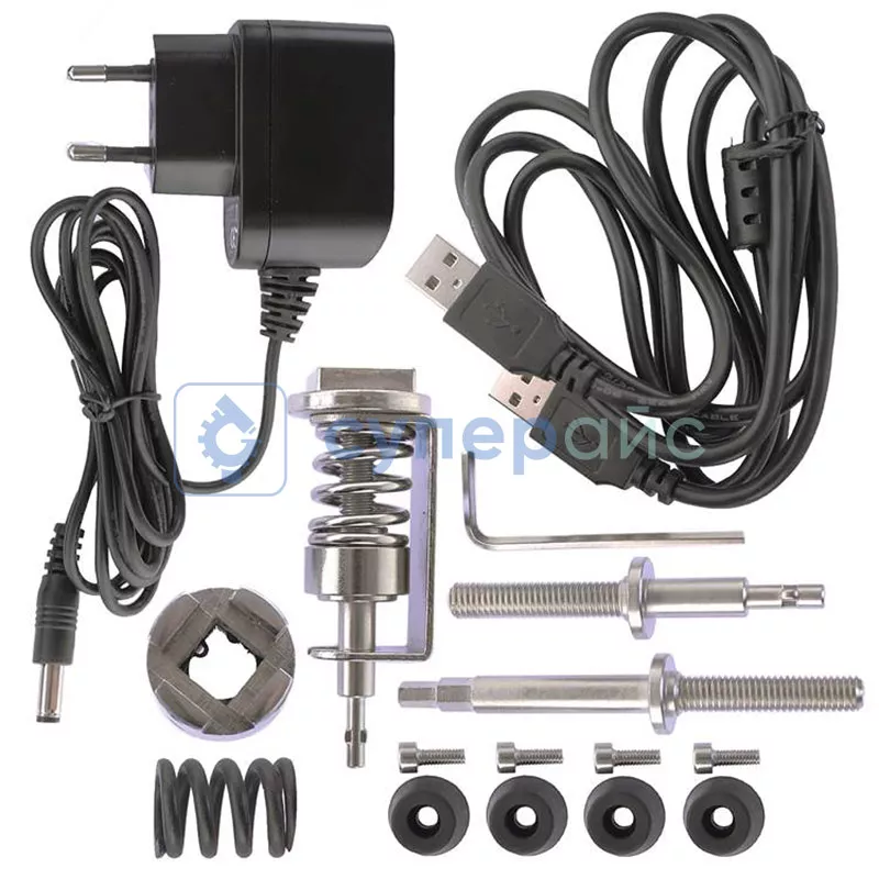 адаптер - 1 шт; пружины - 2 шт; вал - 3 шт; виброопоры с крепежом и ключом - 1 комплект; кабель USB - 1 шт; зарядное устройство - 1 шт; кейс для переноски и хранения - 1 шт; руководство по эксплуатации - 1 шт |
