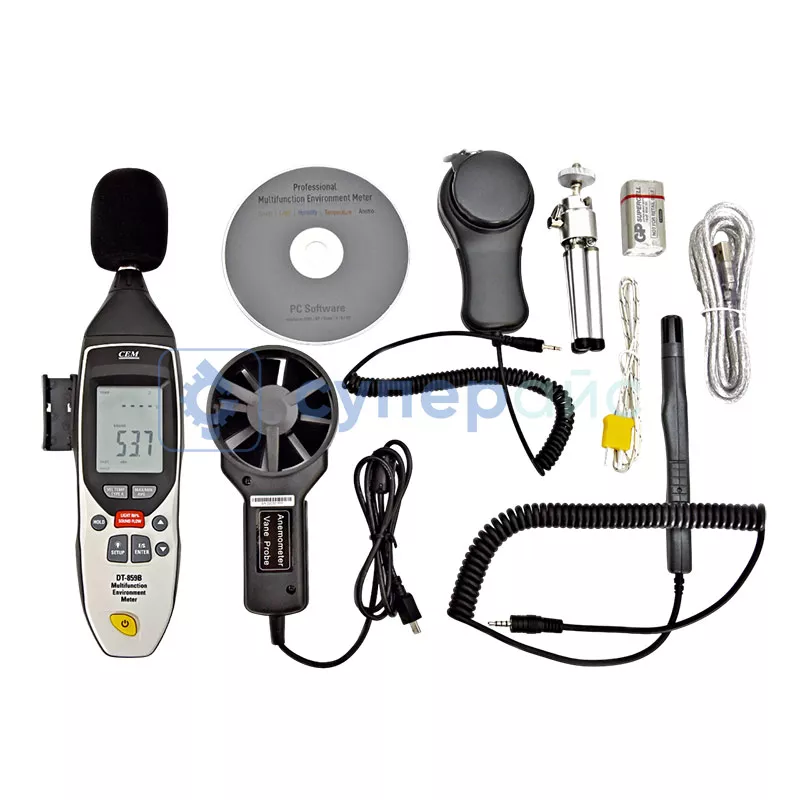 Комплектация | многофункциональны измеритель CEM DT-859B – 1 шт батарея типа "Крона" – 1 шт термопара типа К – 1 шт датчик влажности – 1 шт датчик освещенности – 1 шт микрофон шумомера – 1 шт анемозонд – 1 шт чехол – 1 шт руководство пользователя – 1 шт |