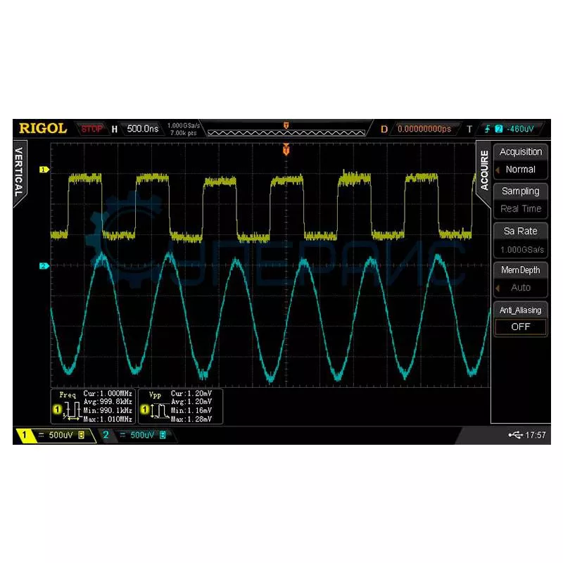Автоматическое измерение | Пиковое значение, Верхнее значение, Нижнее значение, Амплитуда, Среднее, Среднеквадратичный корень, Превышение, Предварительная съемка, Площадь, Площадь периода, Частота, Период, Время нарастания, Время спада, Ширина положительного импульса, Ширина отрицательного импульса, Цикл положительного коэффициента, Отрицательный коэффициент заполнения Цикл, Задержка A → B ↑, Задержка A → B ↓, Фаза A → B ↑, Фаза A → B ↓ |