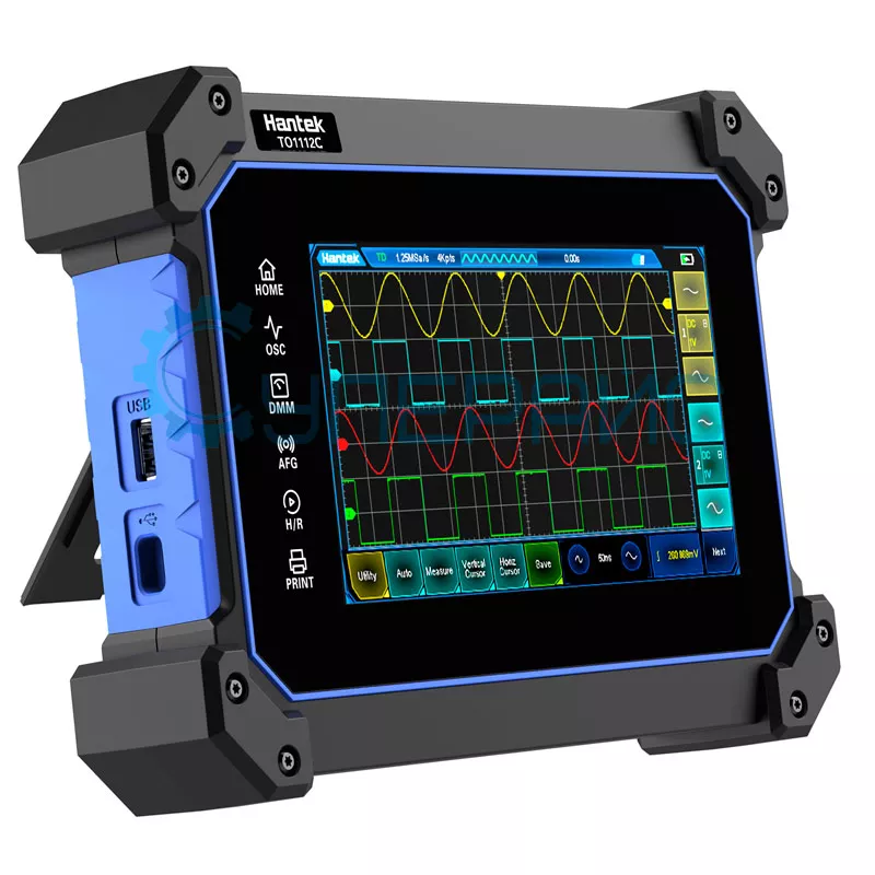 Hantek TO1112C – пример компактного двухканального осциллографа, который сочетает обширный функционал и эргономику современного планшетного устройства. Представленный измерительный прибор будет полезен профессионалам и обычным пользователям, которые работают с электрическими сигналами. Среди опций, которые предлагает TO1112C, установка коэффициента затухания датчика на два положения, измерения временного интервала по горизонтальной и три режима захвата по вертикальной системе, режимы выборки и сбора сигналов, три режима триггера по системе синхронизации. Доступны такие виды запуска, как, например, по фронту или по наклону.