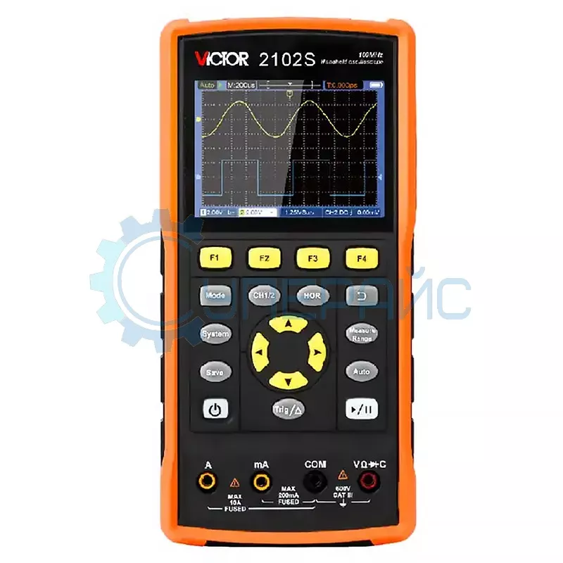 Victor 2102S - это ручной осциллограф с генератором сигналов, который представляет собой компактный измерительный прибор для работы с электрическими сигналами. Модель располагает двумя каналами для измерений. Среди функций, которые поддерживает осциллограф, - измерение напряжения, тока, сопротивления и других параметров (в режиме мультиметра).