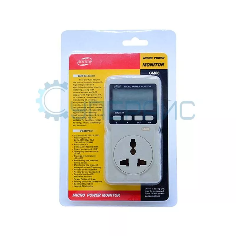 Счетчик Benetech GM86 решает проблему неизвестности пользователей. Энергомер предназначен для измерения потребления электроэнергии бытовыми приборами.