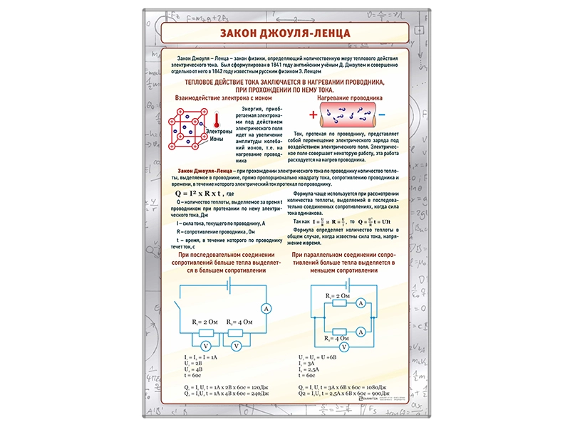 Стенд представляет собой информационную панель, на которой изображено описание основных понятий закона Джоуля-Ленца.
