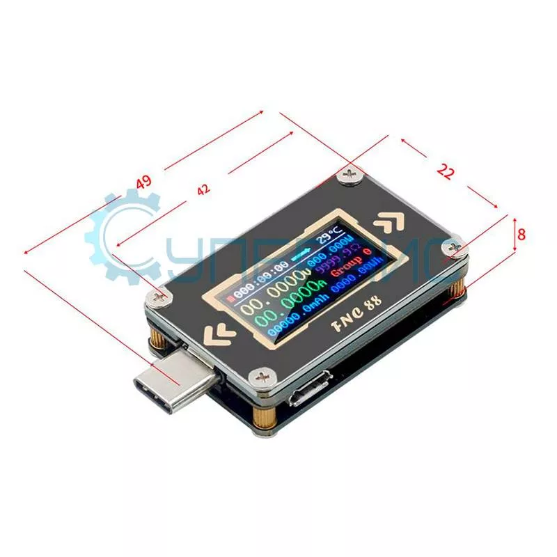 ВНИМАНИЕ! Производство USB измерителя напряжения FNIRSI FNC88 ПРЕКРАЩЕНО. Рекомендуем обратить внимание на альтернативную модель: USB тестер Ruideng UM34 с поддержкой QC2.0 QC3.0