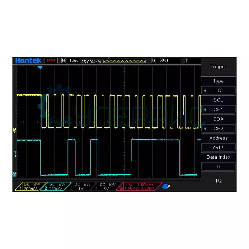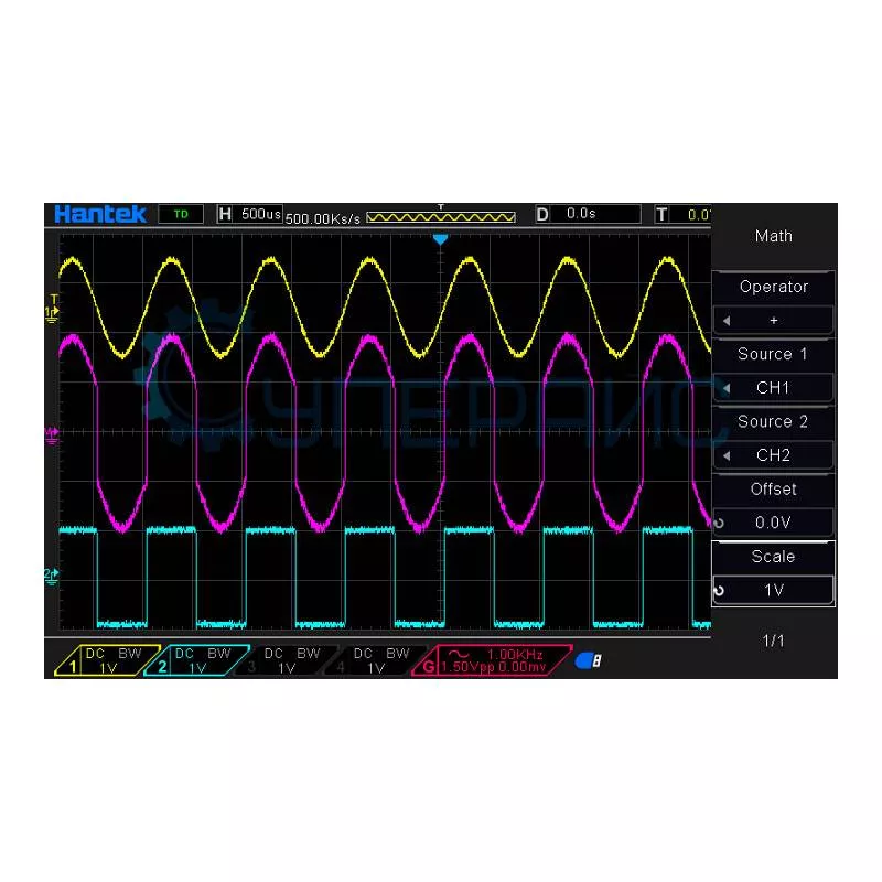 Четырехканальный осциллограф с полосой пропускания 250 МГц и функцией автоматического определения диапазона. 8-дюймовый цветной ЖК-дисплей в приборе помогает легко считывать и показывать текущее состояние сигналов.