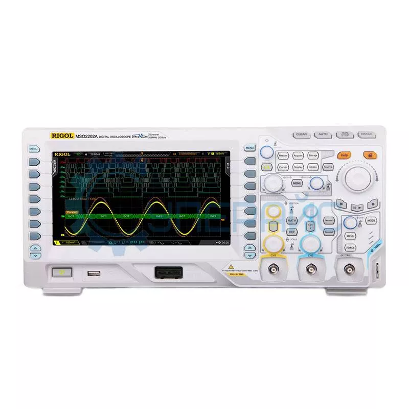 RIGOL MSO2202A представляет собой осциллограф смешанных сигналов, располагающий двумя аналоговыми каналами и шестнадцатью цифровыми. Прибор снабжён системой внешнего запуска. Полоса пропускания устройства составляет 200 МГц. Частота дискретизации – 2 Гвыб/сек. MSO2202A отличает широкий диапазоном чувствительности, что делает его незаменимым инструментом при работе в области исследований электрических сигналов.