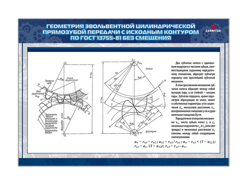 - Геометрия эвольвентной цилиндрической прямозубой передачи с исходным контуром по ГОСТ 13755-2015 без смещения.