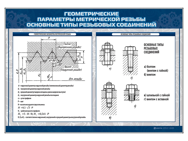 - Геометрические параметры метрической резьбы. Основные типы резьбовых соединений.