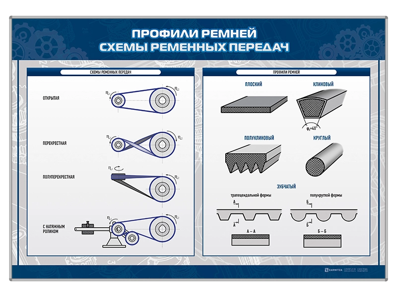 Комплект стендов "Теория механизмов и машин" представляет собой информационные панели, на которых размещены справочные и графические материалы по основным разделам теории машин и механизмов.