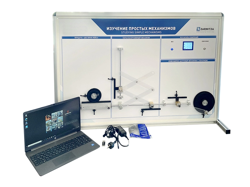 Комплект учебно-лабораторного оборудования "Изучение простых механизмов" позволяет ознакомиться на практике с кинематикой, представленной на стенде простых механизмов: