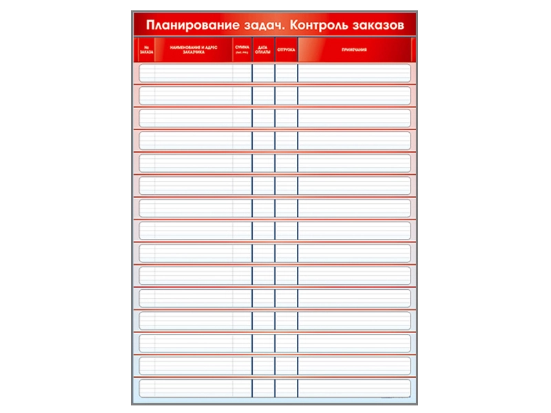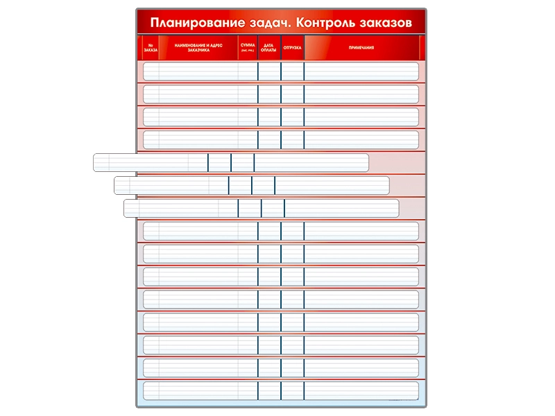 Доска информационная магнитно-маркерная "Планирование задач. Контроль заказов" + комплект магнитных лент