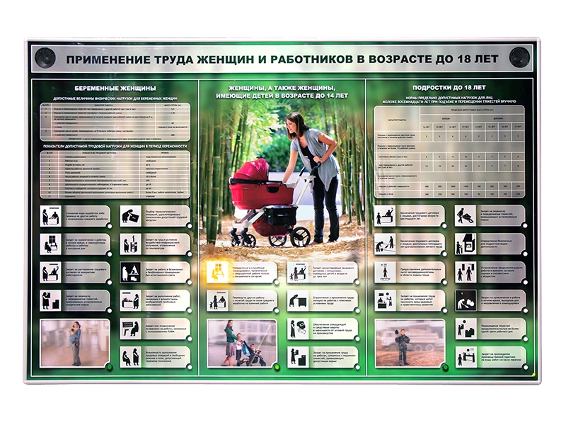 Электрифицированный стенд "Применение труда женщин и работников в возрасте до 18 лет" в соответствии с ТК РФ
