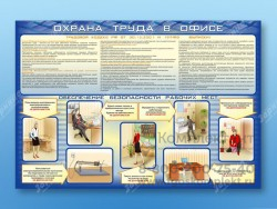 Стенд представляет собой панель, на которой размещена информация об охране труда в офисе.