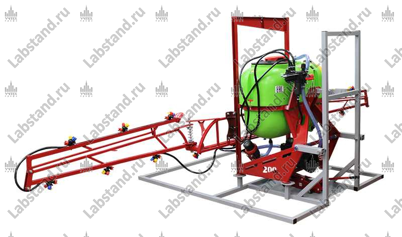 Описание: Стенд представляет собой полнокомплектный навесной опрыскиватель, закрепленный на стационарном металлическом основании.