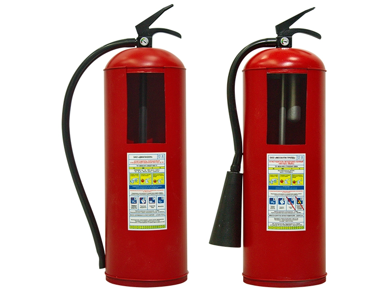 - Огнетушители с вырезом части корпуса, наглядно демонстрирующим их внутреннее устройство.
