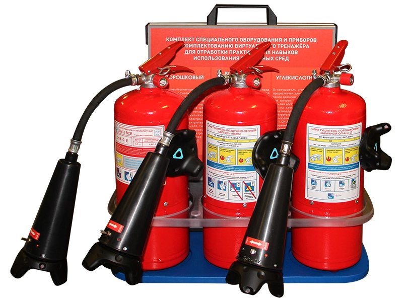 Комплект специального оборудования и приборов по комплектованию виртуального тренажера для отработки практических навыков использования первичных средств пожаротушения