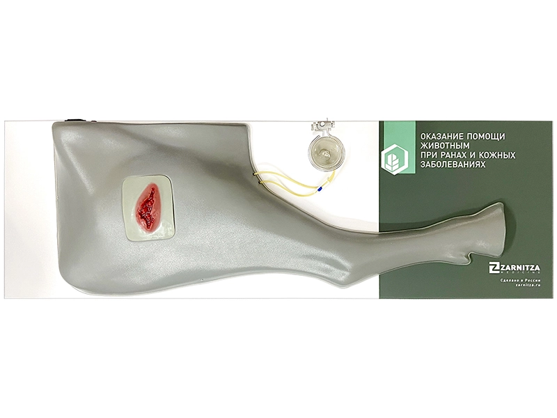Электрифицированный тренажерный комплекс предназначен для отработки навыков оказания помощи животным при ранах и кожных заболеваниях.