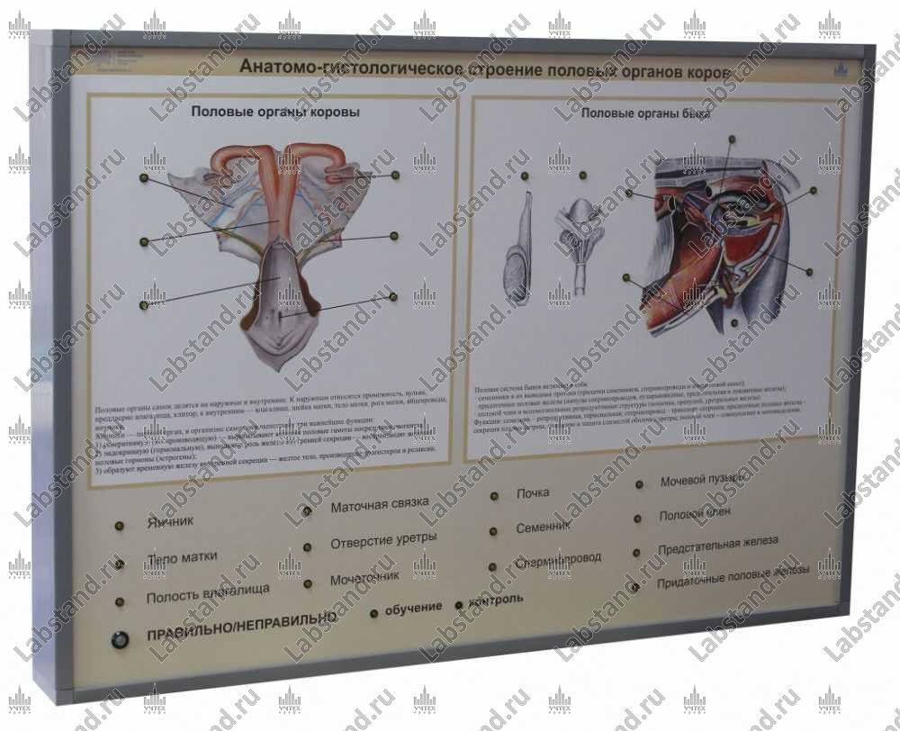 Назначение: Стенд-планшет предназначен для изучения анатомо-гистологического строение половых органов коров в учебном курсе «Акушерство, гинекология и биотехника размножения».
