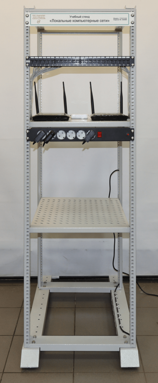 Учебный стенд "Локальные компьютерные сети" предназначен для проведения практических занятий по дисциплинам телекоммуникационной направленности и изучения принципов построения и функционирования простых локальных вычислительных сетей передачи данных, особенностей настройки сетевого оборудования и получения первоначальных навыков по монтажу локальных вычислительных сетей.