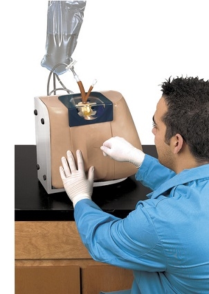 Точное воспроизведение анатомии обеспечивает реалистичные тактильные ощущения при пункции иглой, а также достоверную пальпацию анатомических ориентиров. Позвоночный канал наполняется жидкостью для большей достоверности, отделы L1 и L2 позвоночного столба выполнены видимыми сквозь прозрачную стенку. Функциональная часть данной модели включает в себя позвонки L3-L5, плюс крестец и копчик. Инъекции можно выполнять в положении сидя или лежа на боку. Остистый отросток и пространства, расположенные между остистыми отростками определяются пальпацией под кожным покровом. Эпидуральная инъекция выполняется либо воздухом, либо соляным раствором, чтобы предотвратить потерю сопротивления, и если случайно происходит прокол твердой мозговой оболочки, появляется спинномозговая жидкость.