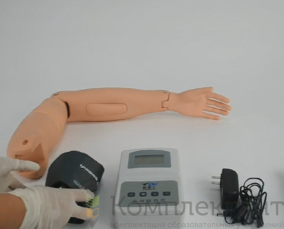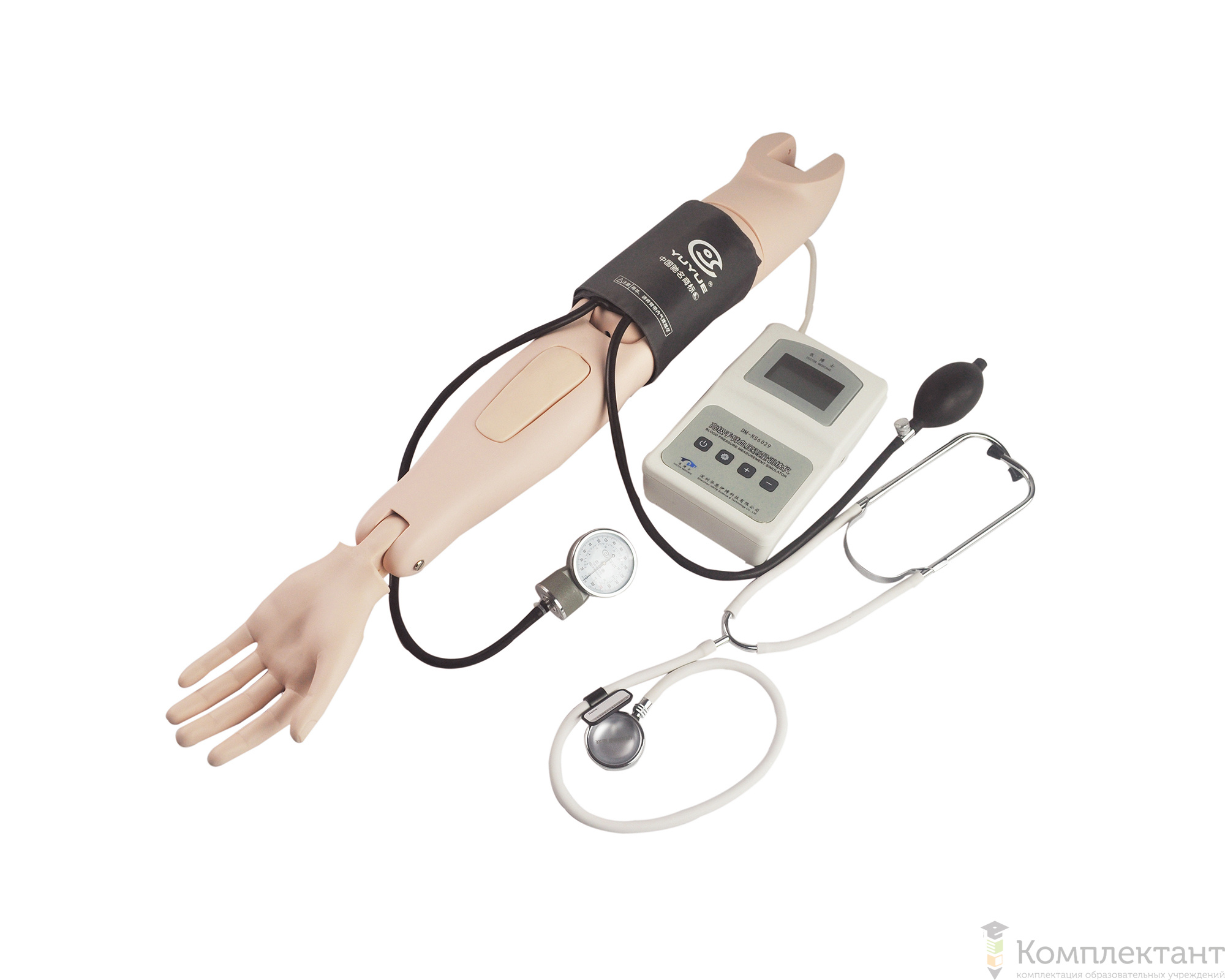 Представляет собой модель руки взрослого человека В комплект входит манометр, стетоскоп, электрический контроллер Регулируется систолическое давление, диастолическое давление, частота и объем пульса Диапазон настройки: систолическое давление 70-250 мм рт. ст.; диастолическое давление 40-140 мм рт. ст.; точность настройки артериального давления 1 мм рт. ст.; частота пульса 0-220 раз / мин Гибкость в локтевом суставе