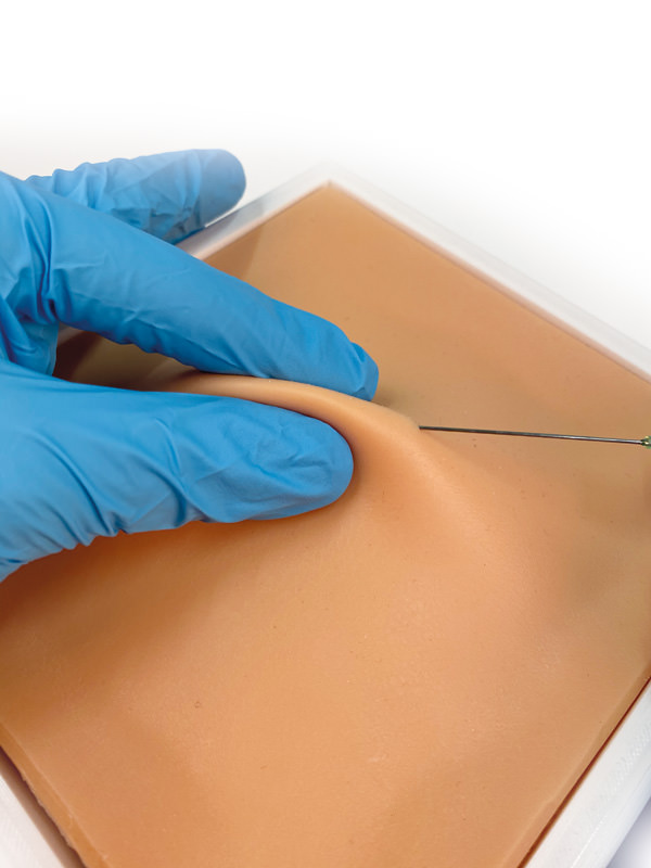 Эта многослойная подушка, имитирующая ткани, позволит реалистично отрабатывать навык выполнения подкожных инъекций у собак и кошек. Реалистичная, имитирующая кожу поверхность хорошо поддается пальпации на слое дермы и подкожного слоя, а для определения необходимой глубины инъекции складку кожи можно приподнять. С блоком можно отрабатывать выполнение инъекций небольшого объема и под различными углами. Мягкая поверхность смыкается после инъекции и позволяет выполнять их несколько раз. В комплект тренажера входят присоски для надежной фиксации на поверхности стола.