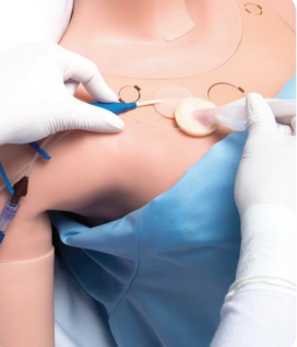 Реалистичный модуль вставки для центральной венозной линии поддерживает возможность перевязки, промывания и введения жидкости/ лекарственных препаратов. Внешний дренаж обеспечивает вливание большого объема жидкости по центральной линии.