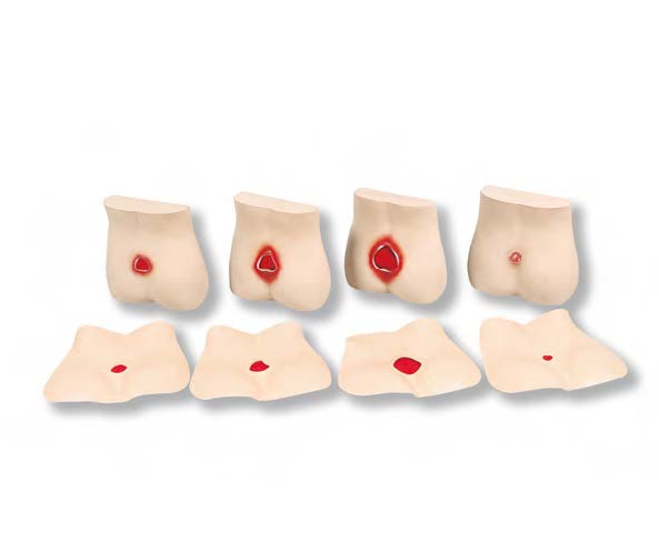 - кожные накладки предназначены для отработки навыков ухода за пролежнем на каждой стадии