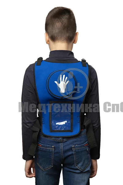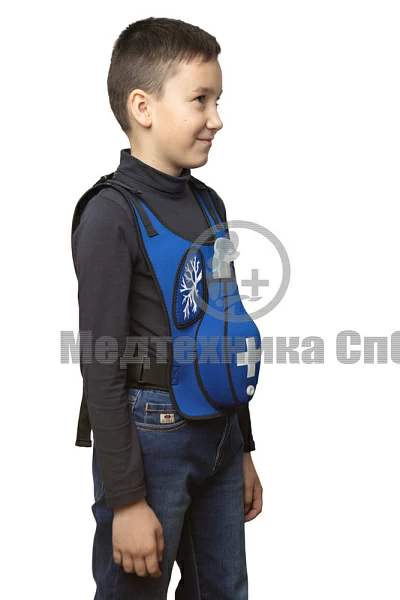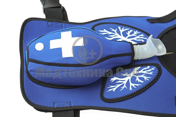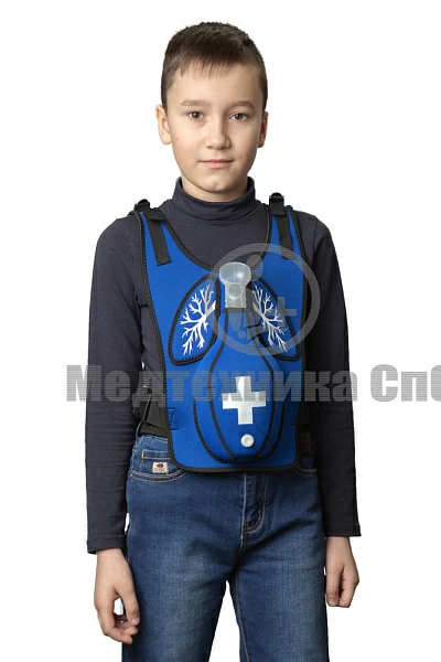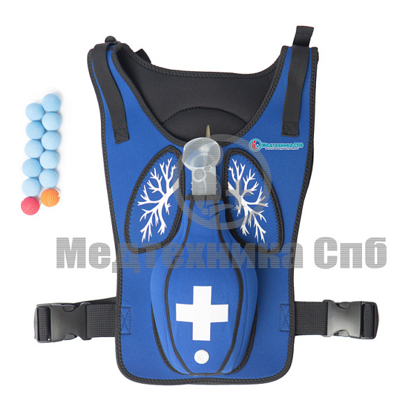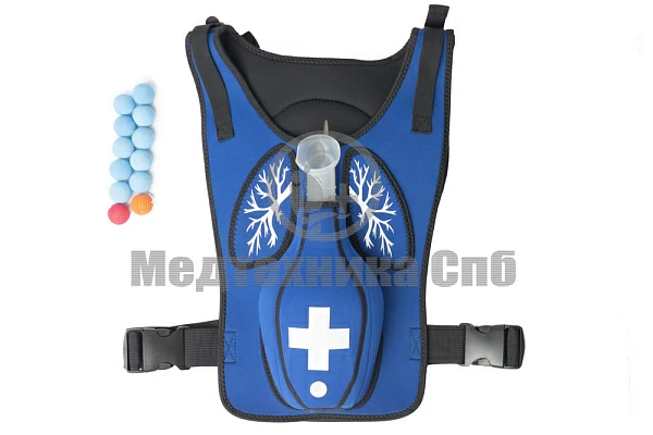 Жилет разработан с учетом анатомических особенностей строения ребенка, поэтому он отлично подойдет в качестве наглядного пособия. Изделие включает фронтальную часть с имитацией грудной клетки и тыльную часть со специальной прокладкой. Дети могут тренироваться в парах, а преподаватель может отслеживать правильность выполнения процедуры. Индикатором успешной тренировки станет шарик, имитирующий инородный предмет. Шарик должен вылететь наружу, освобождая дыхательные пути.