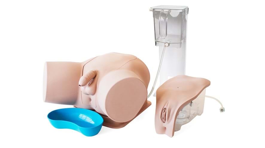 Стандартный комплект тренажера для отработки навыков катетеризации содержит как мужские, так и женские модули для обучения катетеризации. Сменные модули устанавливаются на стандартную основу тренажера, входящую в комплект поставки, что позволяет практиковаться в выполнении основных процедур, а также отрабатывать более продвинутые навыки действий в надлобковой области. Прозрачные стенки мужского и женского модулей катетеризации дают тренажеру возможность визуализировать процедуру и контролировать ее. Это позволяет получать обратную связь с обучающимися в режиме реального времени и оценивать их успехи.