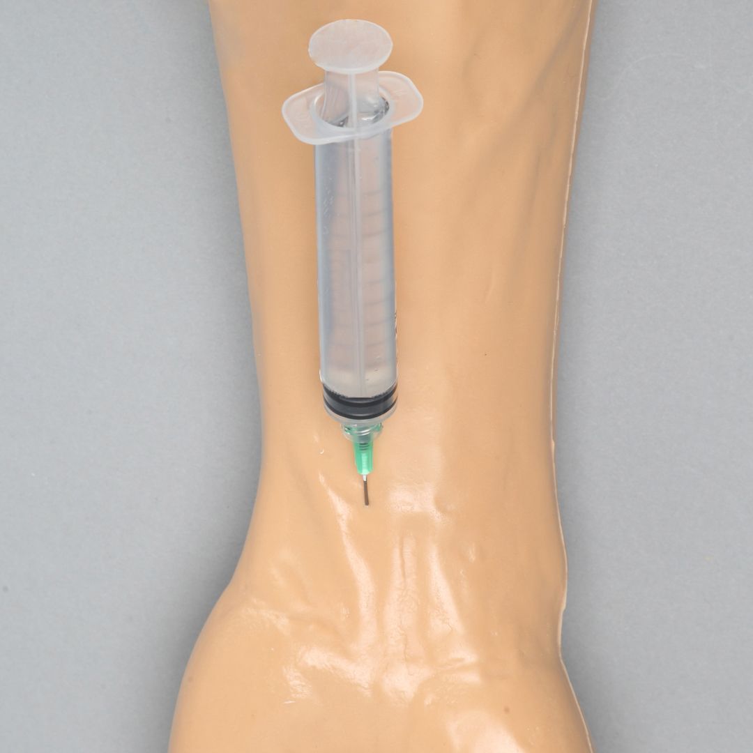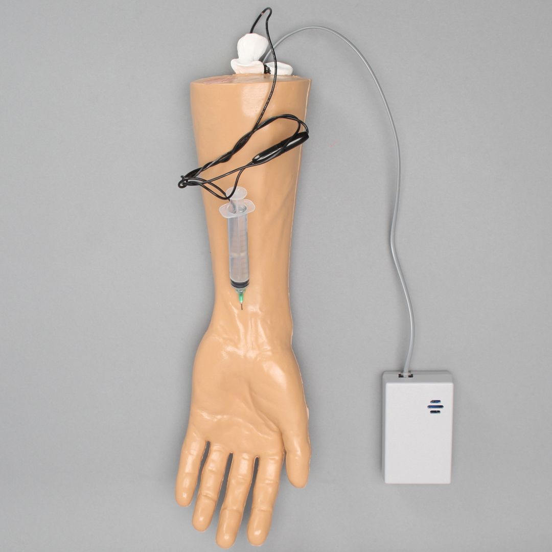 Тренажер для отработки навыков инъекций в кисть дает звуковую обратную связь, когда игла касается определенной внутренней структуры. Основные структуры включают указательный палец, щель запястного канала, первый пястно-запястный сустав, болезнь Де Кервена, лучелоктевой сустав и запястный сустав. По запросу могут быть добавлены и другие внутренние детали. Модель включает: комплект игл, эмиттер обратной связи и батарейку.