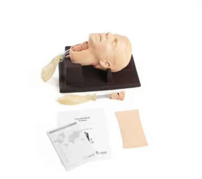 На этой модели со сменными жесткими и мягкими модулями трахеи, также подходящей для установки в целой линейке манекенов взрослых, можно отрабатывать навыки пункционной и хирургической крикотиреотомии.