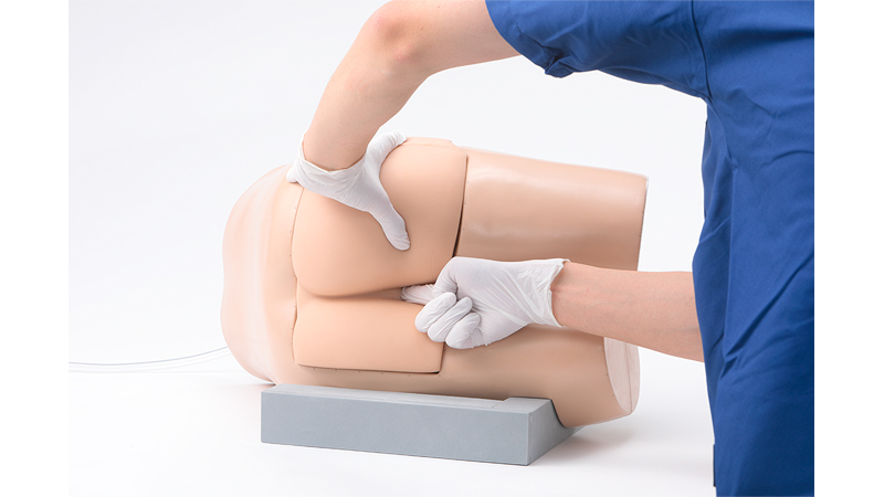 - Ягодицы тренажера представлены в виде мягкотканых вставок с возможностью разведения для доступа к анусу и прямой кишке