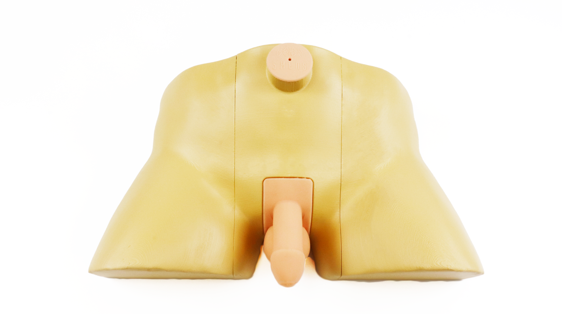 - Тренажер имитирует анатомически верную модель нижней части тела человека со съемной моделью наружных мужских половых органов