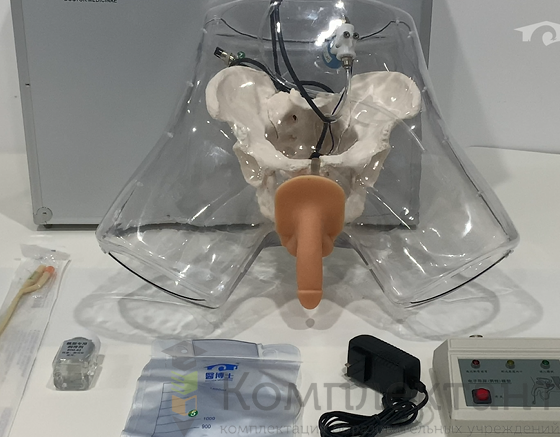- В тренажере смонтирован костный таз, поясничный позвонок, копчик и мочевой пузырь, что позволяет лучше изучить процесс катетеризации благодаря прозрачному корпусу и получать обратную связь с помощью электронного контролера
