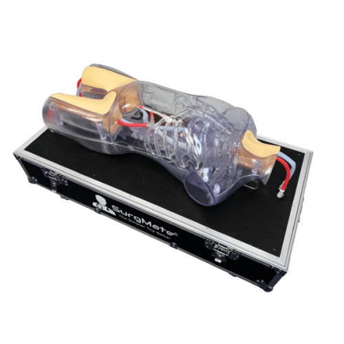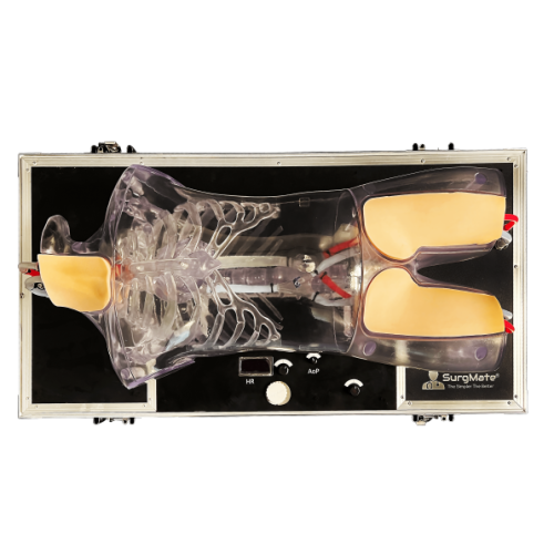 - Учебная платформа представлена в виде модели мужского торса с интегрированной системой кровотока