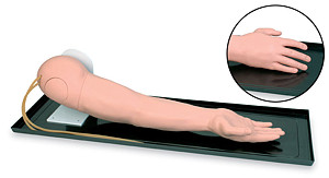 Модель руки для обучения в/в инъекциям обеспечивает участки для инъекций в крупные вены руки, кисти, а также в/м инъекций в дельтовидную мышцу. Отрабатывать различные навыки на одном тренажере позволяют локтевая ямка, подкожная медиальная вена руки, подкожная латеральная вена руки, а также дорсальные пястные вены. Участок для в/м инъекций содержит прокладку из вспененного материала, которую можно выжимать и высушивать для многократного использования.