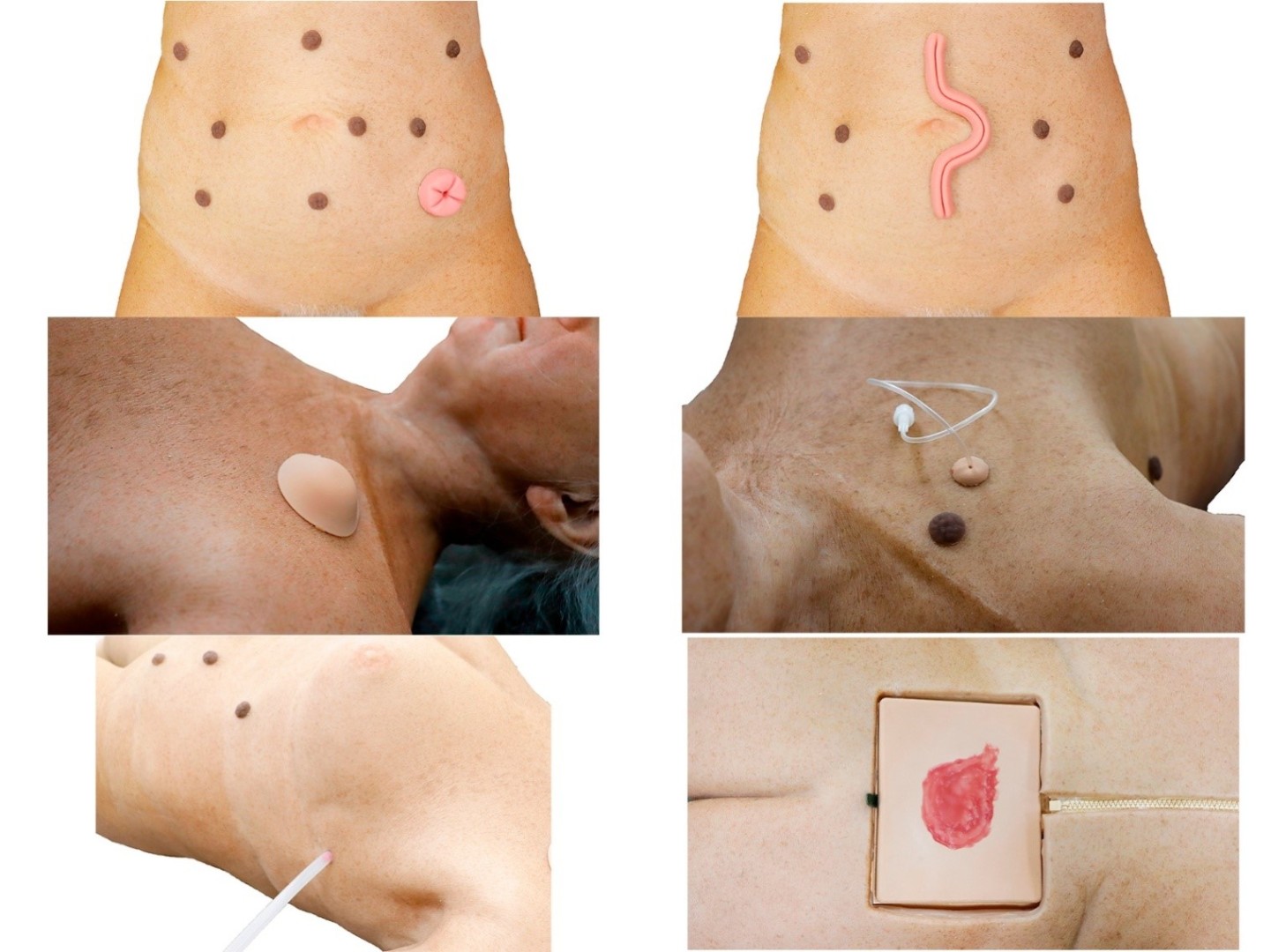 - Передняя брюшная стенка манекена с возможностью ухода за колостомой, дренажами и накладками послеоперационных ран